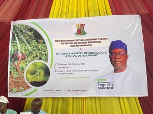 In her earlier address of welcome, the Permanent Secretary, Ministry of Agriculture and Rural Development, Mrs. Abosede Owoeye, revealed that by providing farmers with access to climate information, soil testing results, and training on climate-resilient practices, the Oyo State Government under the leadership of Engr seyi Makinde is demonstrating its commitment to supporting the state’s agricultural sector and ensuring food security for its citizens.