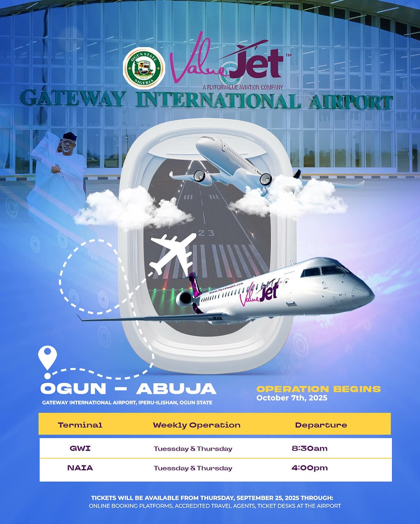 This milestone will begin with direct commercial flights between Ogun and Abuja, operated by ValueJet, one of Nigeria’s fast-growing aviation companies.