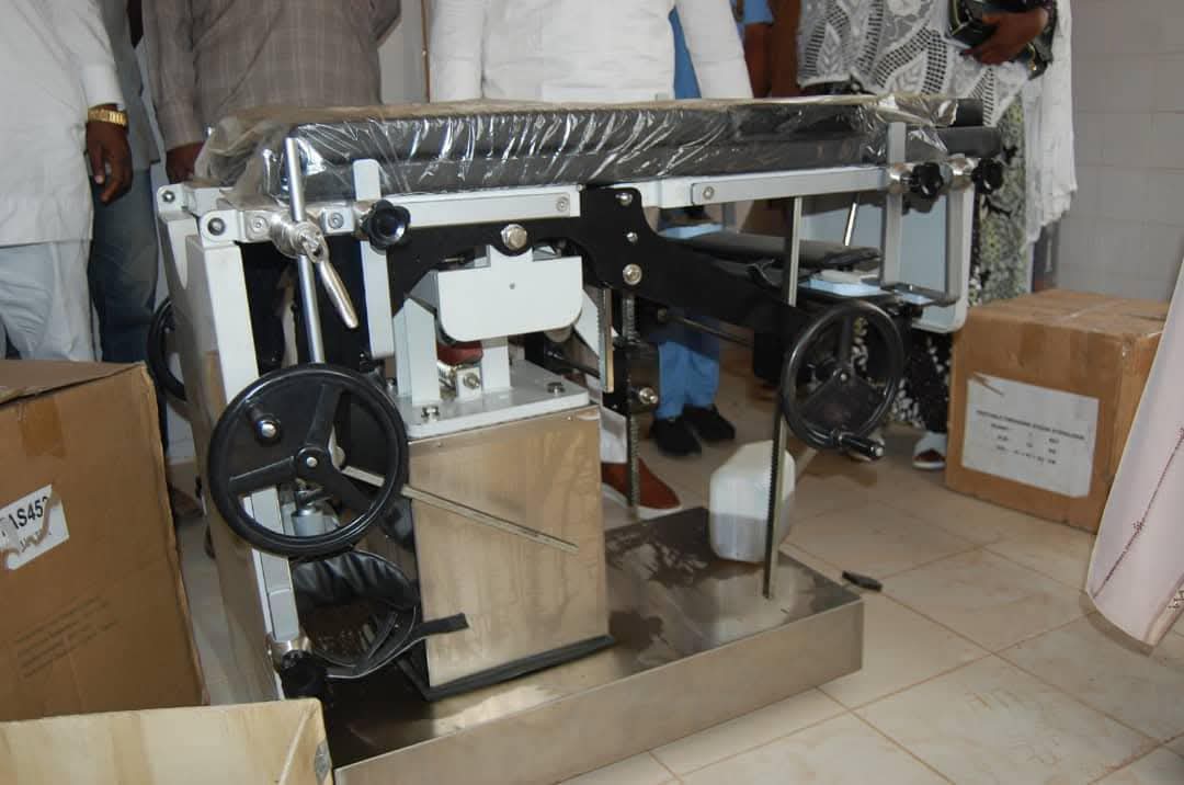 The new equipment the hospital took deliveries of included essential items such as Drip Stand, Hospital Bed, Hospital mattresses, Hospital pillows, Bedside lockers, Theater operating light, Theater operating table, Suction machine, Standing weighing machine, Binocular microscope and Haematocrit centrifuge.