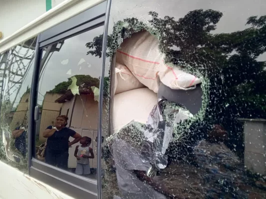 The bus driver, Joseph Akpaenin, whose phone was stolen and himself left with a battered shoulder from the attack, narrated that their saving grace was when the booth of the bus flung open with several bags of rice and garri dropping off.