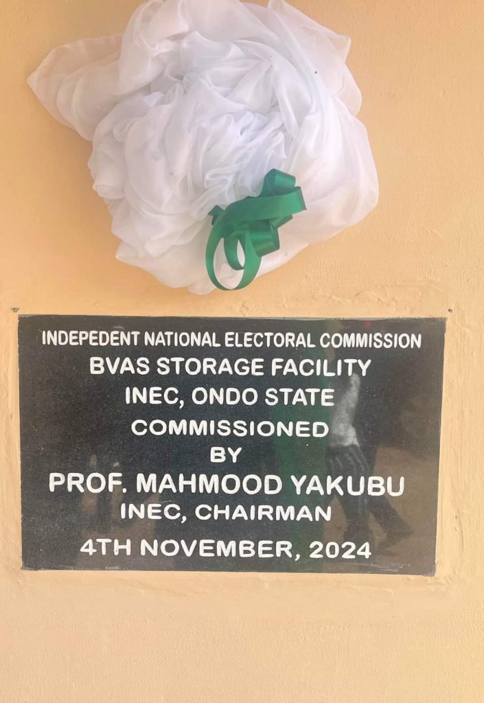 The Independent National Electoral Commission (INEC) Chairman, Prof. Mahmood Yakubu, today commissioned a brand new Bimodal Voter Accreditation System (BVAS) storage facility in the Commission’s State office in Akure.