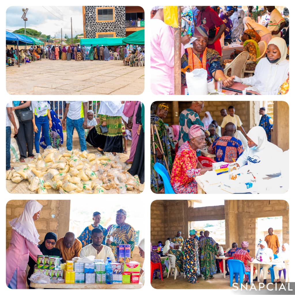 The outreach, which commenced on October 6, 2025, at Irawo in Atisbo Local Government, continued on October 7 at Ogbooro in Saki East, and concluded on October 8 in Saki West a date that also coincided with the birthday of the founder, Hajia Aishat Aliyu Adeleke in collaboration with the College of Nursing Sciences, Muslim Medical Foundation, Saki, and Alsafurah Medical Hospital, the programme offered free consultations, medical check-ups, drugs, and treatment for various ailments to residents of the three local governments.