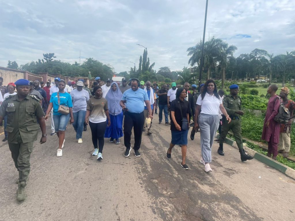 The governor, who was represented by the Secretary to the State Government, Prof. Olanike Adeyemo, led the 2.5 kilometres walk, which took off from the Government House Arcade, Agodi, Ibadan enroute Total Garden Roundabout and terminated at the frontage of the Governor’s Office, Secretariat, Agodi, Ibadan.