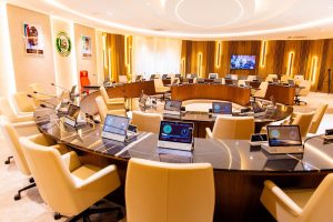 The remodeled chambers is equipped with modern hi-tech facilities, including a state-of-the-art public address system, individual monitors displaying meeting agendas and deliberations, three large television screens for live discussions, modern executive chairs, and enhanced lighting to create the right ambience for serious state business.
