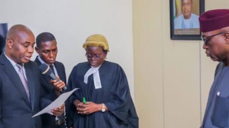 At the brief ceremony, the Governor charged the Acting Chief Judge to remain independent so that the last hope of the common man endures. He also mourned the departed Chief Judge, Honourable Justice John Oyewole Adeyeye, and pledged that the state government would continue to do all in its power to ensure that the judiciary has a conducive atmosphere and policies to discharge their duties effectively.