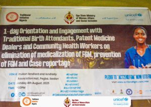 Frontline community health actors in Oyo State, including Traditional Birth Attendants (TBAs), Patent Medicine Vendors (PMVs), and Community Health Workers (CHWs), have pledged to end the medicalization of Female Genital Mutilation (FGM) and champion the fight against the harmful practice among girls and women.