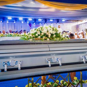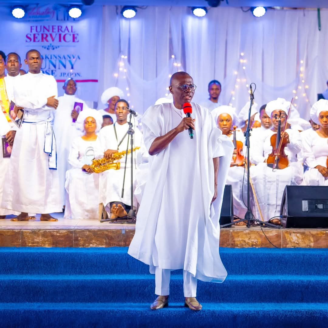 The funeral service which was held at the LTV 8 Ground, Blue Roof Pavilion, Agidingbi, in Ikeja and was presided over by officiating ministers from the Celestial Church of Christ, particularly from the Jedidah Parish I in the Oke-Ira, Ogba area of Lagos.