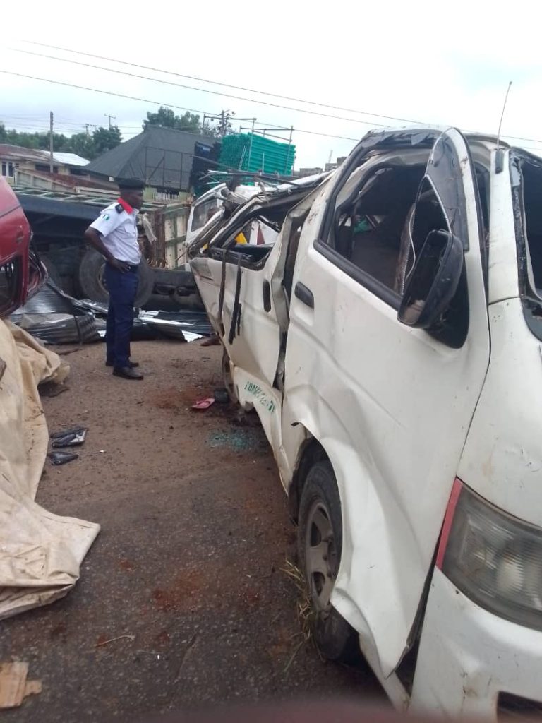 The accident occurred when a trailer loaded with roofing sheets collided with an 18-seater Hummer bus, a Micra taxi, and a Honda CR-V car.